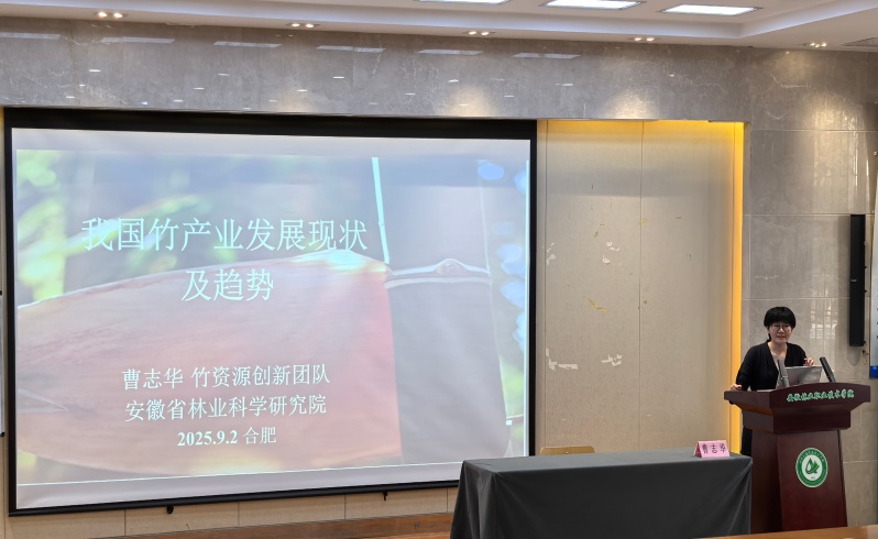 曹志华副研究员聚焦“我国竹产业发展现状及趋势”,概述世界与中国竹资源的分布及品类情况,介绍中国竹产业的加工体系与覆盖的主要产品领域,明确未来竹产业将聚焦竹林高效可持续经营、高附加值产品开发,以及“以竹代塑” 技术推广等方向。