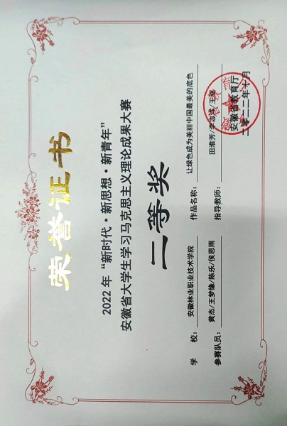 近日,安徽省教育厅公布了2022年“新时代·新思想·新青年”安徽省大学生学习马克思主义理论成果大赛获奖名单,我院报送的学生作品荣获大赛“微视频”组二等奖。