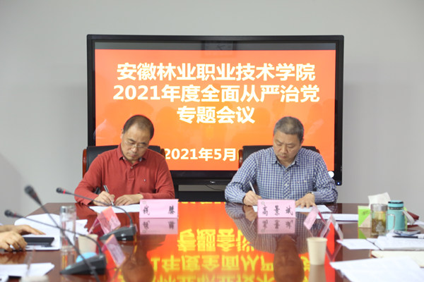 会上,院党委负责人与学院各部门负责人签订了2021年安徽林业职业技术学院落实全面从严治党和党风廉政建设责任书。