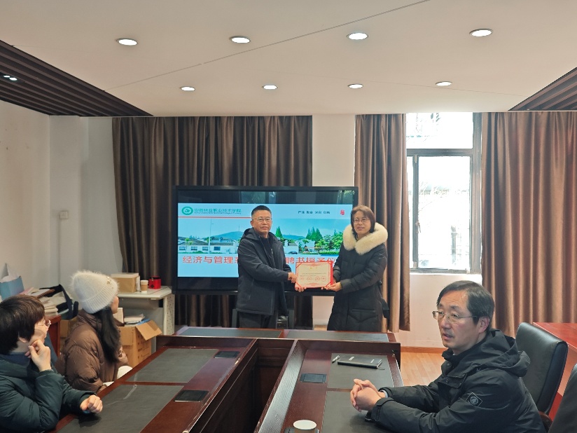 2025年12月26日,经济与管理系举行产业教授聘任仪式。系党总支书记高劲松、数字财经教研室主任宋存凤、数智管理教研室主任胡晶晶及部分教师代表参加仪式。仪式由经济与管理系宋雯雯主任主持。