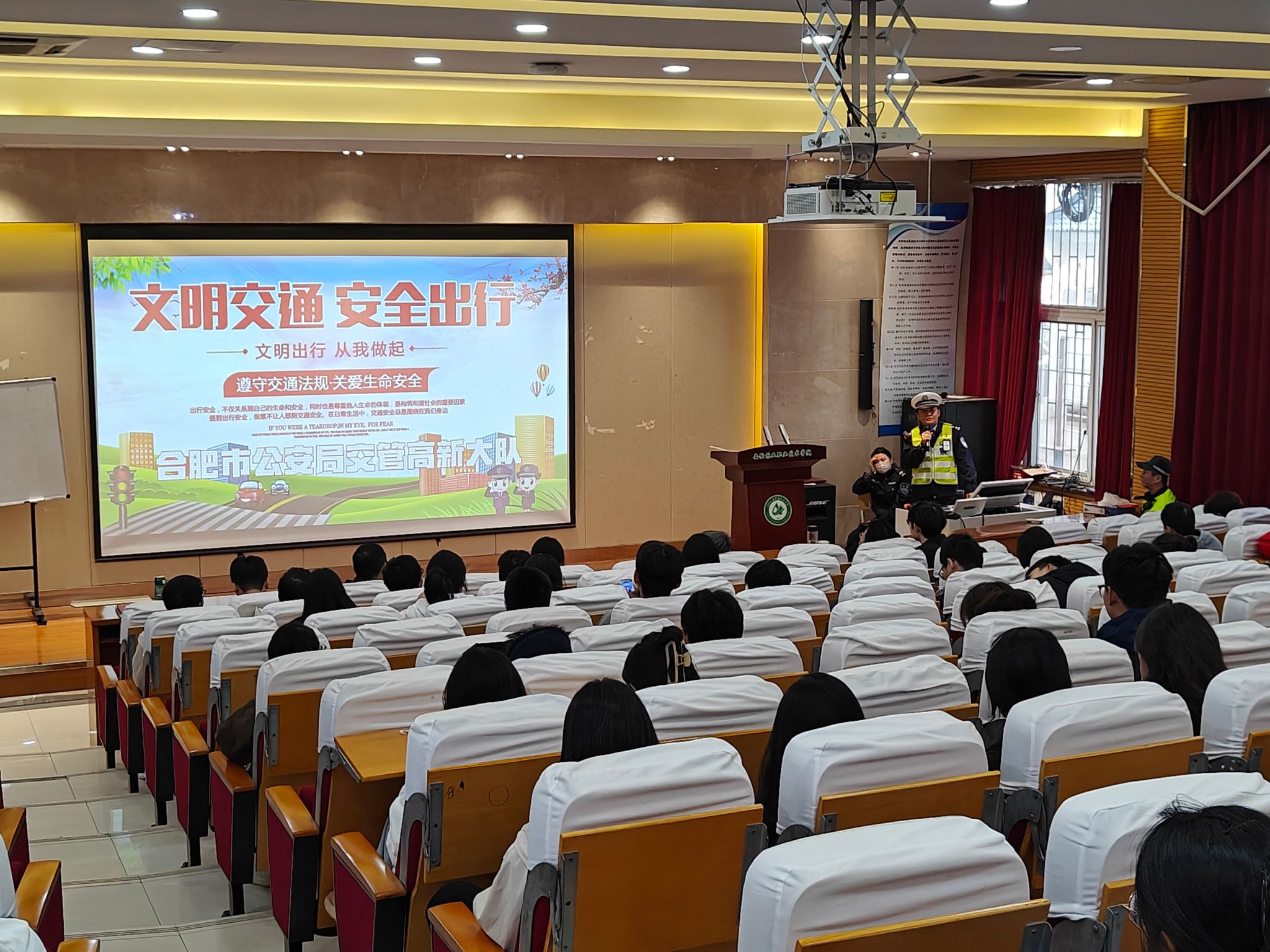 为增强学生交通安全意识,10月29日下午,学院特邀合肥市高新区交警大队二中队指导员余先洪来校,为200余名学生进行了一场生动而深刻的交通安全知识讲座。本次讲座聚焦与学生日常出行密切相关的电动自行车骑行安全。余先洪指导员采用案例教学与沉浸式体验相...