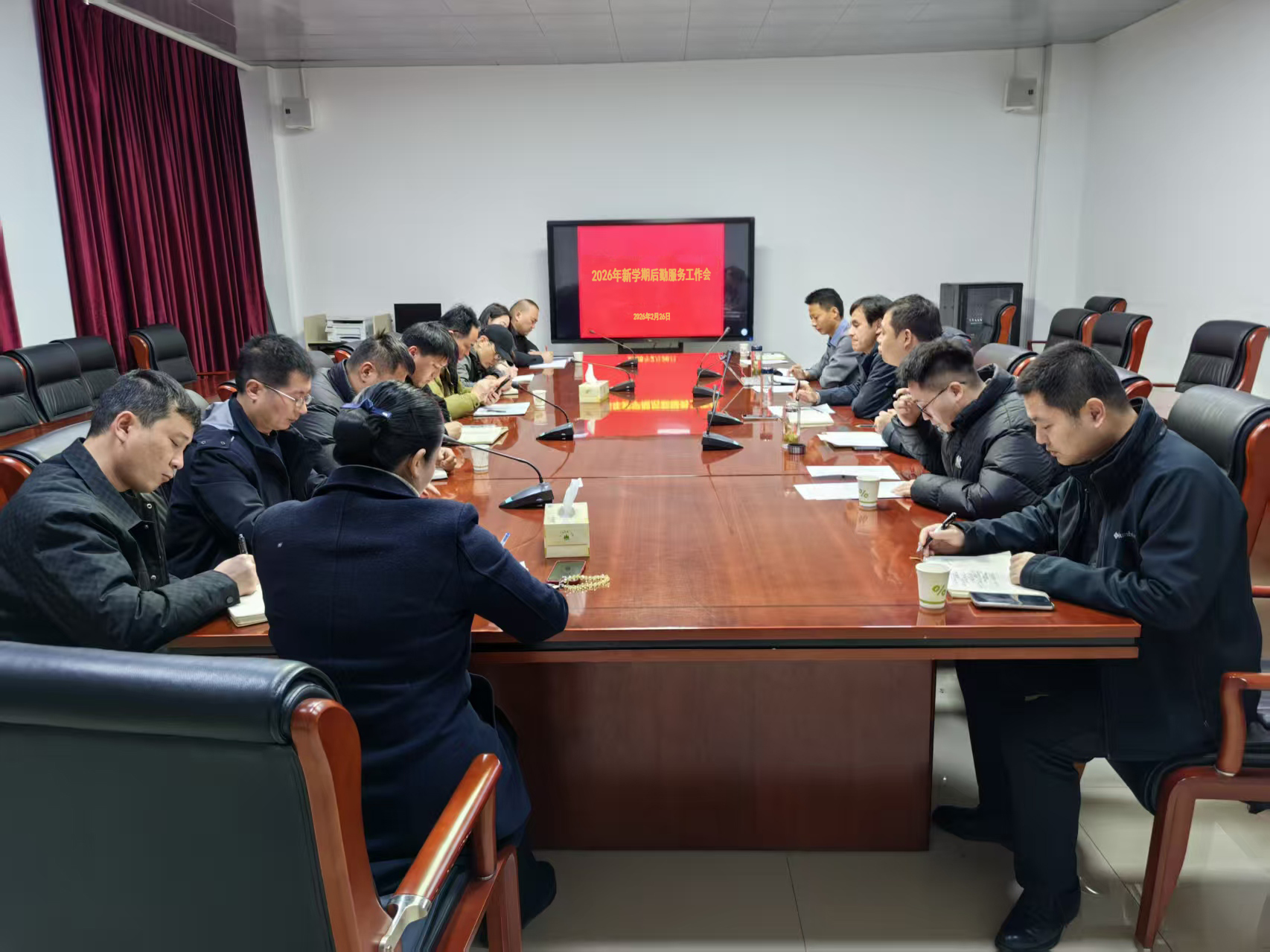 为确保新学期后勤服务保障高效开局、平稳推进,2月26日上午,学院召开2026年新学期后勤服务工作会议。院党委委员、总务处处长王立德出席会议,总务处全体人员、各后勤服务企业驻校项目经理及主要管理人员参会。会议由总务处负责人蒋其忠主持。会议通报了上...